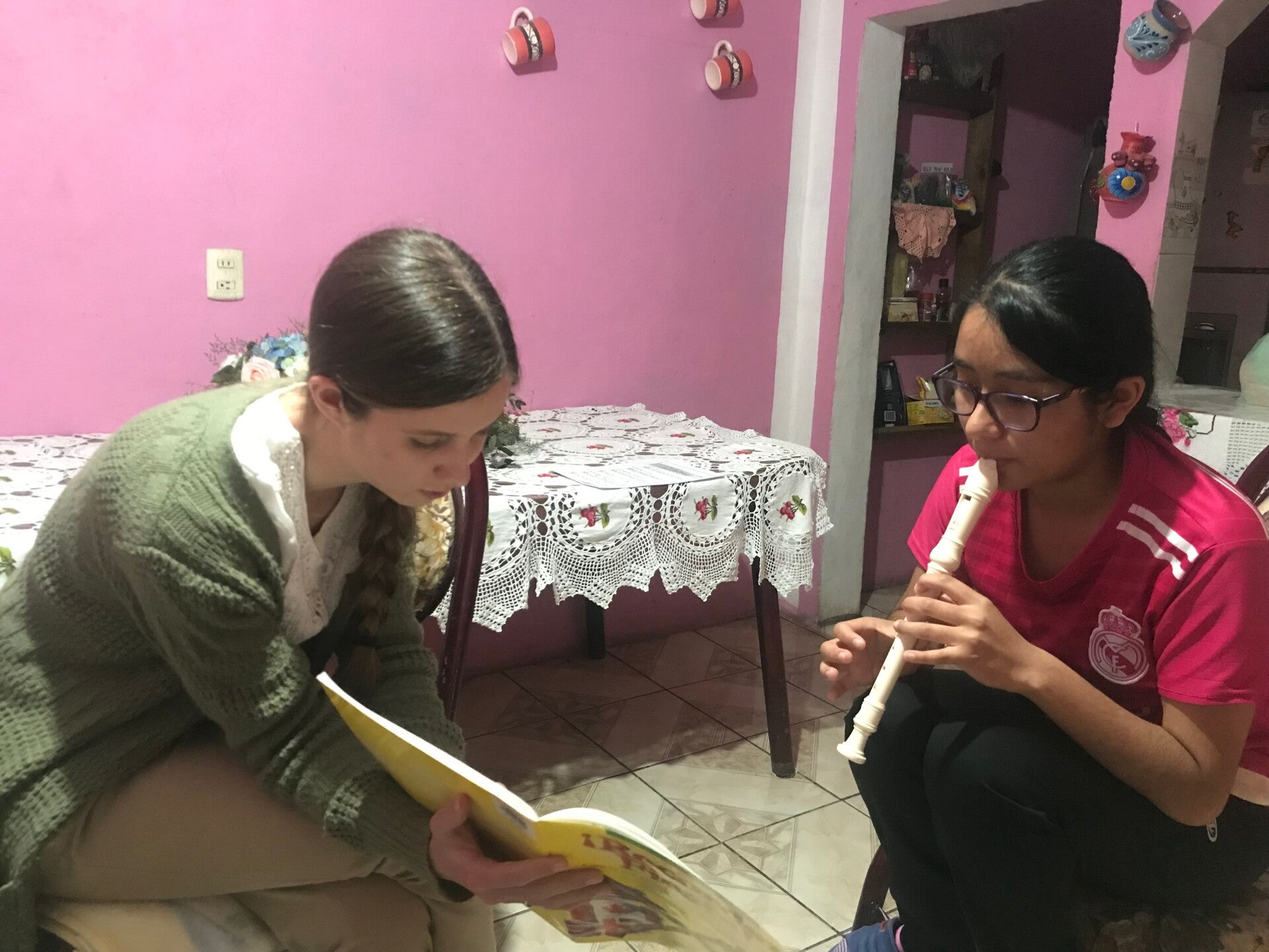 Tacos with Fati, Yasmine, Manuel, Trini and Ana! I'll never be able to eat an American taco again. Below, I'm with Lidia and Arlin, my two violin students!