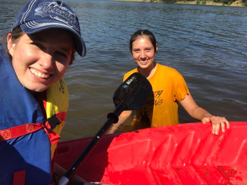The second camping trip (photos below) was just this last weekend at a new place at a lake near Ciudad Hidalgo about an hour and a half from where I live. We headed out as soon as we finished the Parents in Action camp on Saturday, April 29. This time, I camped with Annie Clark and Gloria, a girl from Oregon who was part of the discipleship program in 2021 at Camp Berea (where I'm currently living). We decided to be adventurous and pick the "romantic" spot close to the lake, tucked away from everyone else. Annie and I faced the dangers of many branches and thorns to set up the hammock in a forested cubbyhole, peeking out at the lake. It was an absolutely beautiful weekend full of warms days and freezing nights. It was such a blessing seeing all the families and kids playing games and enjoying fellowship in the great outdoors! On Sunday after church, Isaac Roa and I raced across the lake with Annie and Regis (husband of Annie's sister Katie) following in the kayaks.